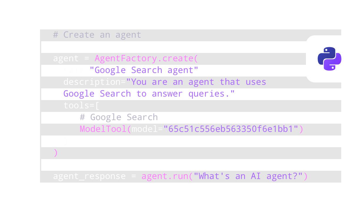 Build and deploy your custom agent in just a few minutes.