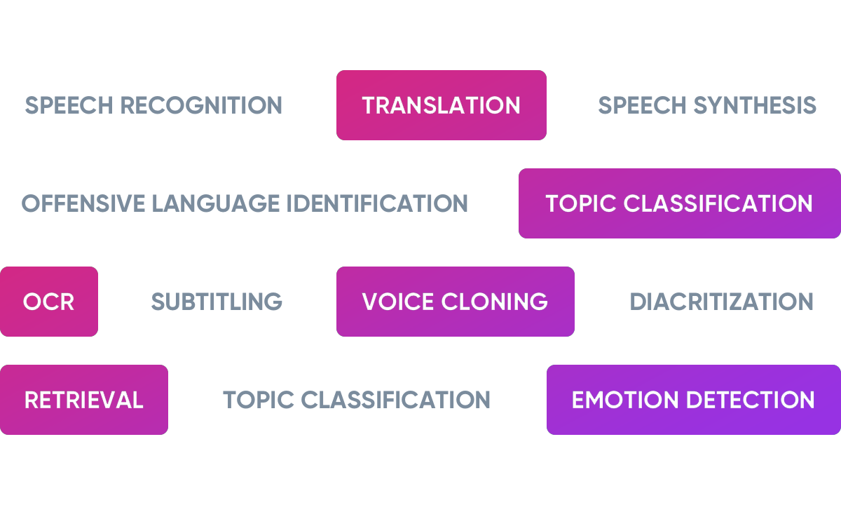 Tokenization, stemming, lemmatization, Named Entity Recognition (NER), Sentence segmentation and POS tagging